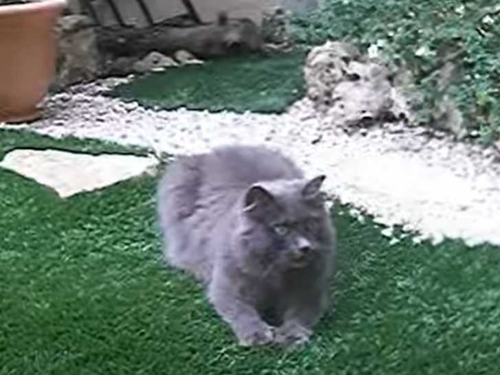 Dès que le temps est opportun, certains chats aiment être dehors. C'est en effet le cas de ce chat Nebelung qui s'amuse dans le jardin. Il semble adorer ce moment en compagnie de son propriétaire.