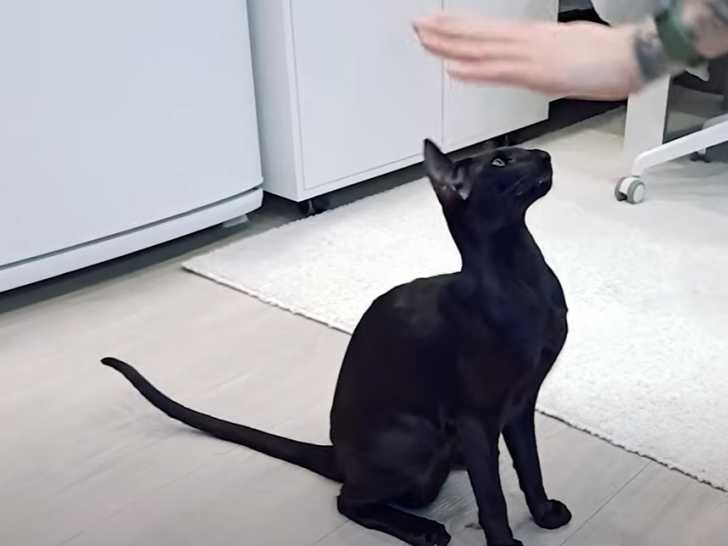 Insolite ! Qui a dit que les chats ne pouvaient pas être dressés comme des chiens ? Cette vidéo prouve que cela est possible ! En effet, le chat Oriental Shorthair présent au sein de cette vidéo obéit à son maitre tel un chien. Par exemple, il sait s'assoir sur commande de son propriétaire sans aucun problème. Le félin semble adorer être dressé pour faire des petits tours.