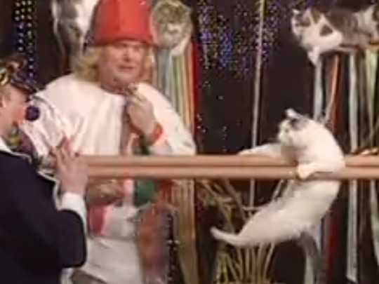 Issu du monde du cirque russe, le clown Iouri Kouklatchev s'est reconverti dans le dressage de chats. Le dressage félin n'a pas grand-chose à voir avec celui des chiens. Contrairement aux chiens, les minous ne sont pas forcément aussi soucieux de faire plaisir à leur humain. Ils demeurent instinctifs et indépendants, aussi le clown est-il susceptible d'improviser à tout moment durant le spectacle selon le bon vouloir de ses artistes à fourrure.