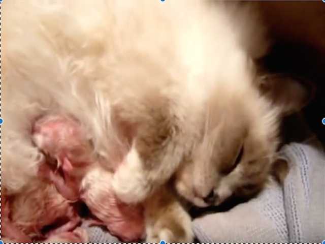 Merveilleux moment où nous pouvons assister à la naissance de 4 magnifiques petits chatons birmans.