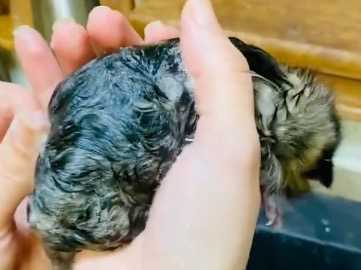 L'heure du premier bain a sonné pour cet adorable chaton Bobtail Americain ! Sa propriétaire toilette son petit félin dans l'évier, avec l'aide de savon adapté et d'eau. Le chaton intrigué se laisse faire et profite de ce moment de soin, de tendresse ainsi que de complicité.
