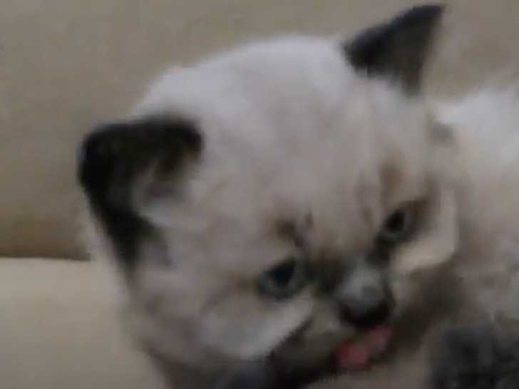 Cette vidéo montre un chaton de race Himalayen en train de faire sa toilette quotidienne. En effet, le petit félin est installé confortablement sur un canapé et s'occupe de nettoyer son pelage. Il est allongé sur le ventre et s'occupe de l'entretien de ses pattes.