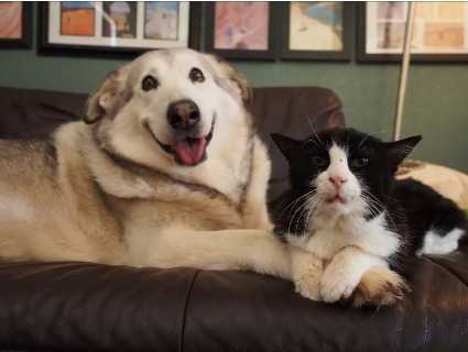 L'amitié entre un chien et un chat est possible comme vous pouvez le voir sur cette vidéo touchante. Pourtant le chat en question a été adopté alors qu'il était déjà bien âgé, mais il faut dire que ce beau Malamute est vraiment adorable, avec les humains comme avec les chats !