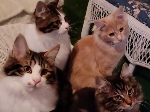 Cette vidéo montre des magnifiques chatons Bobtail des Kouriles au sein d'une chatterie. En effet, les petits félins sont très complices : ils sont collés les uns aux autres.