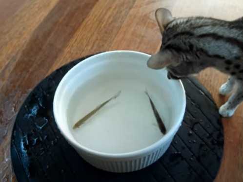 L'instinct de chasseur chez le chat est plus ou moins présent en fonction des caractères. Insolite ! Cette vidéo montre un chat de race Genetta en train de jouer avec deux poissons. En effet, le petit félin est d'abord intrigué par les deux animaux puis, en attrape un pour le manger. Il semble prendre beaucoup de plaisir à chasser !
