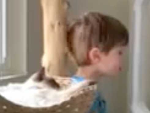 Le Balinais Traditionnel est connu en partie pour être un compagnon idéal pour une famille avec des enfants. Cette vidéo montre un chat et un enfant l'un à côté de l'autre. Le félin ne semble pas être perturbé par l'enfant et continue paisiblement sa sieste dans l'arbre à chat.