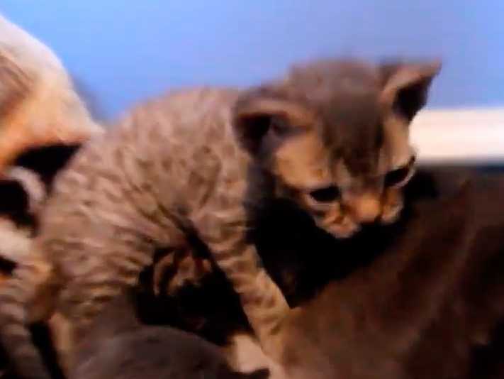 La cohabitation entre plusieurs chatons peut très bien se passer, voire s'avérer taquine. Cette vidéo montre des chatons Devon Rex allongés les uns à côté des autres contre leur mère au sein d'un panier douillet. A seulement 3 semaines, ils semblent très bien s'entendre, car ils essaient de réaliser leurs premiers pas en s'appuyant les uns sur les autres.