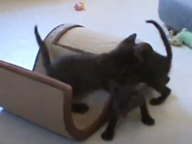 Cette vidéo montre plusieurs chatons Havana Brown en train de jouer. En effet, les chatons jouent avec divers jeux comme un des grattoirs à griffes et aiment se courir après : les félins semblent adorer ce moment de complicité.