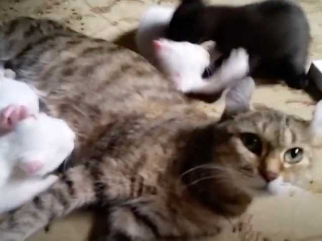 Cette vidéo montre une maman Alpine Lynx en train de nourrir ses chatons. En effet, les petits félins sont très jeunes et ont besoin d'être allaités par leur mère.